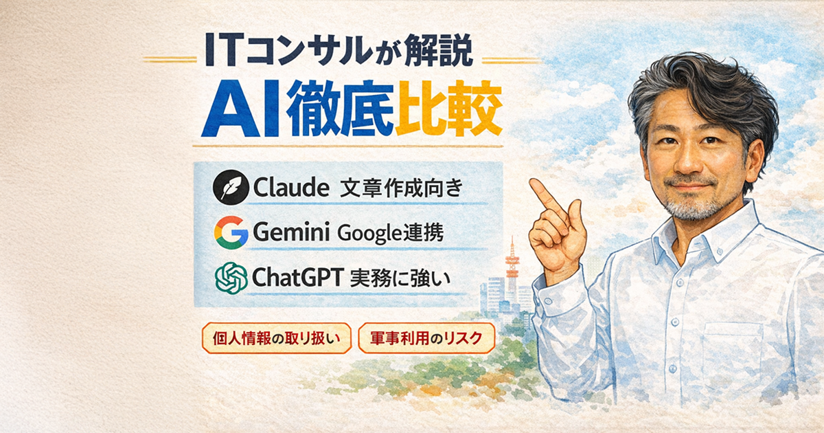 生成AIは便利ですが、それぞれ得意分野が違います。今回は、ITコンサルの現場で感じる違いと、